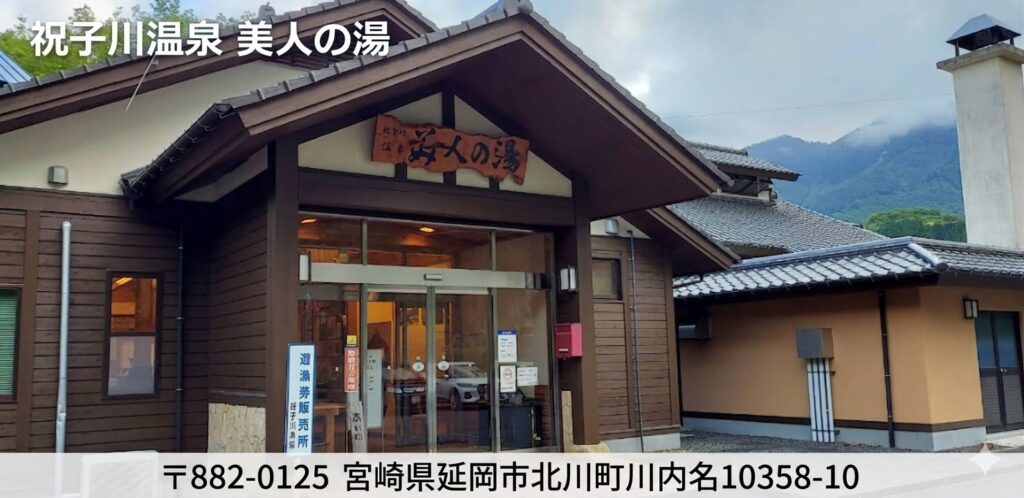 宮崎県延岡市北川町の山奥、大崩山のふもとにある日帰り温泉です。泉質はアルカリ性単純温泉で、肌がすべすべになることから「美人の湯」と呼ばれています。露天風呂からは山の自然を眺めながら入浴でき、登山やキャンプ、渓流釣りの帰りに立ち寄る人も多い人気の温泉です。周辺には大崩山や祝子川渓谷など自然スポットがあり、四季の景色も楽しめます。祝子川はホリエモンさんが沢登りしたおすすめのスポットですよ♪